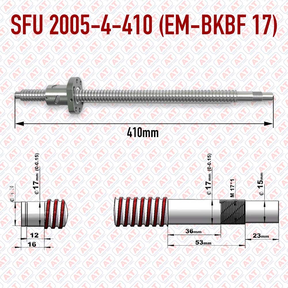SFU 2005-4-410 (EM-BKBF17) WERB includes a 20 mm, 5 mm lead ball screw with ends machined for BKBF17 supports, a flange ball nut, and EM-BKBF17 bearing blocks. The assembly is ready to connect to a suitable motor coupling and mounting plates. When installed correctly, it delivers accurate, low-friction linear motion on CNC equipment in Pakistan.