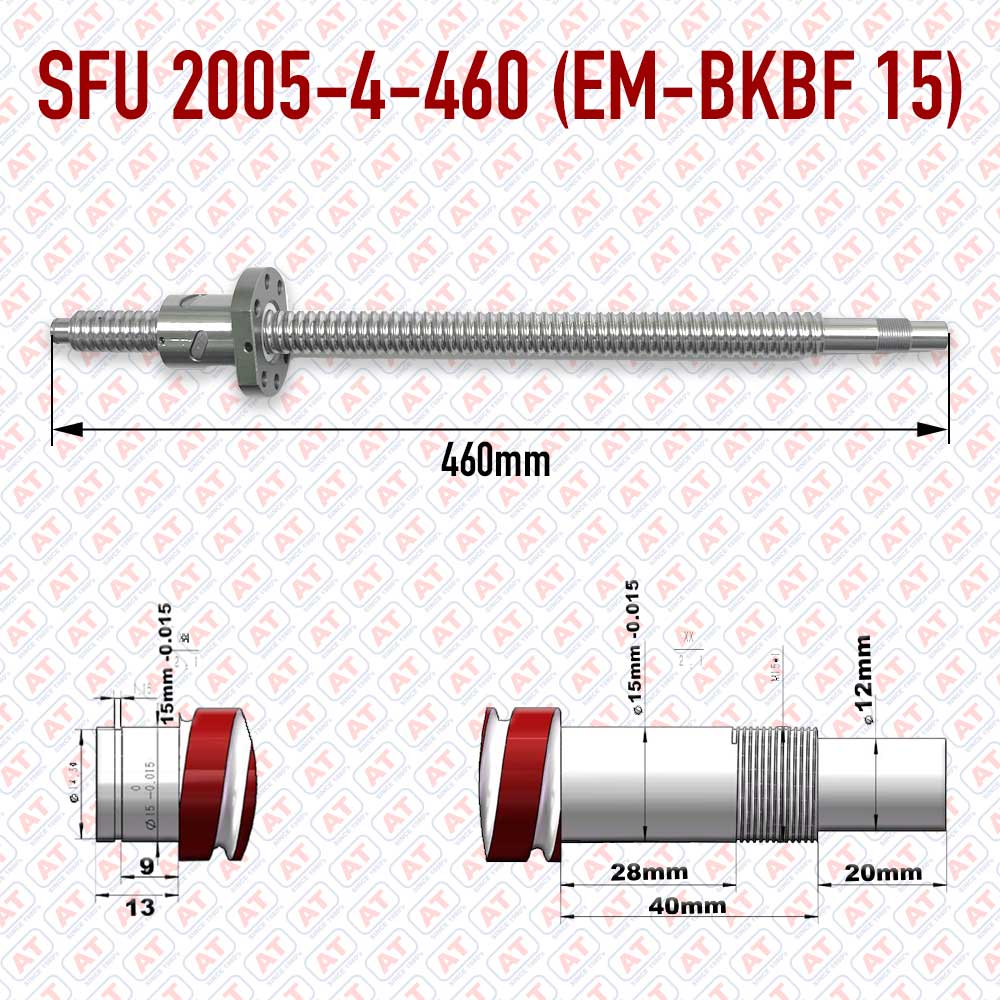 WERB SFU 2005-4-460 CNC Ball Screw Set with EM-BKBF15 Supports, 20 mm, 5 mm Lead, 460 mm Length