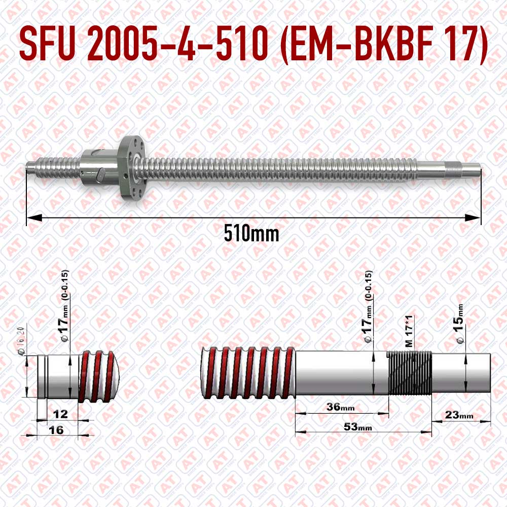 WERB SFU 2005-4-510 CNC Ball Screw Set with EM-BKBF17 Supports, 20 mm, 5 mm Lead, 510 mm Length