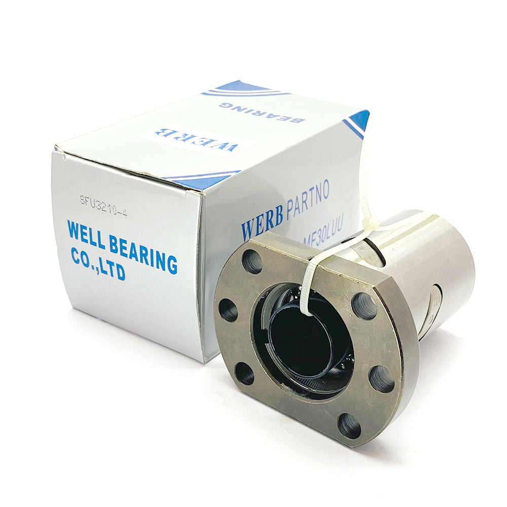 SFU 3210-4 WERB is matched to 32 mm diameter ball screws with 10 mm lead and the WERB thread profile. The nut body is manufactured from quality steel with hardened, precision-ground raceways for long working life. Used together with a compatible WERB ball screw, supports, and couplings, it forms a reliable drive system for large CNC equipment in Pakistan.