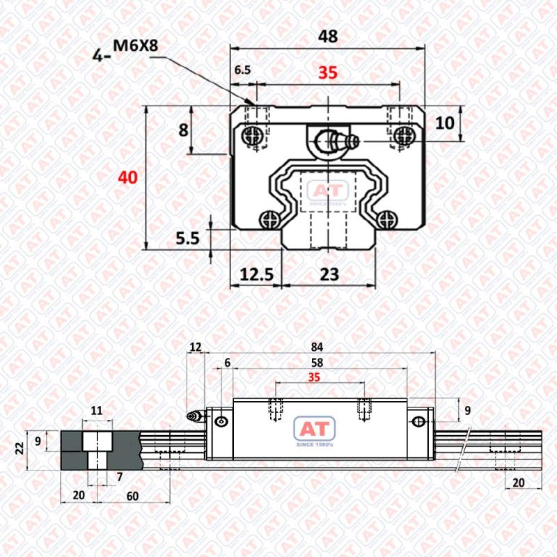 SHAC CNC Linear Guide Block GHH 25 CA | Standard Load Carriage for 25 mm Rail