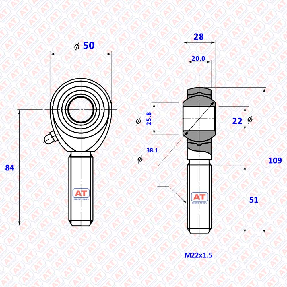 Get authentic AT POS 22L left thread rod end bearings only from Abdul Traders—